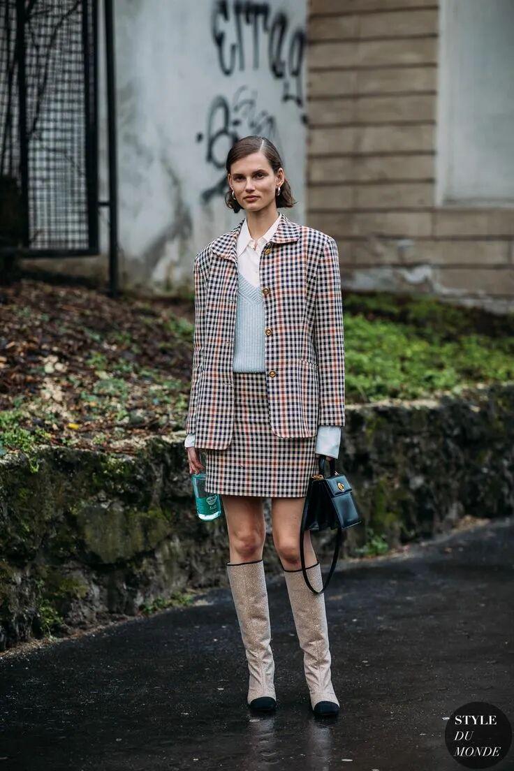 说实话,格纹不好穿,再加上跟套装结合,不小心就会显得硬板。所以 最好选择千鸟格、人字纹、牧羊小方格这些素雅柔和的格纹。
